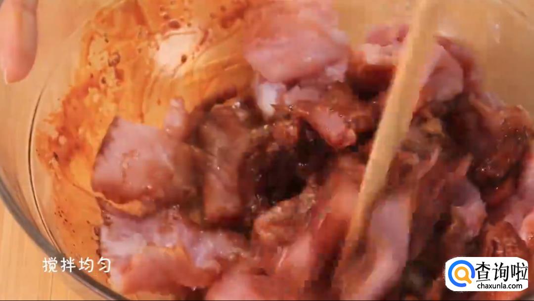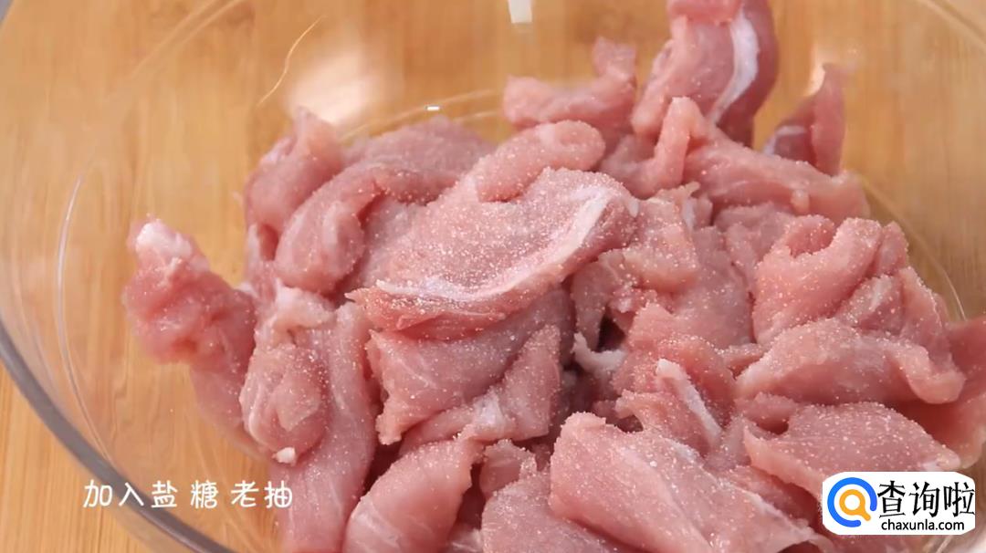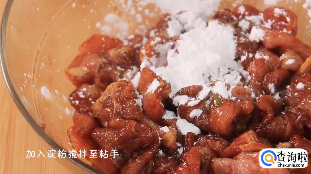 将适量淀粉加入到肉片中,充分搅拌直至粘手为止。
