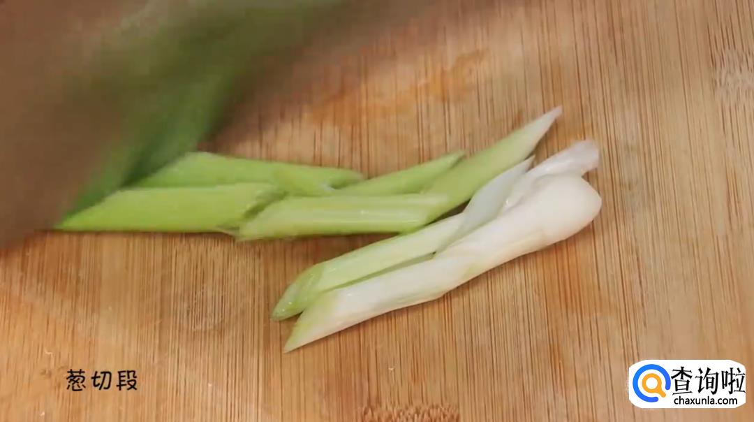 首先,将准备好的材料进行处理,把姜块切成片,再把葱切成段状。