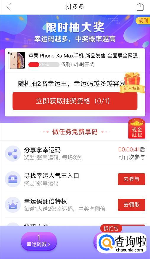 再回到拼多多等待开奖,越多好友参与,中奖概率就越大,如果没有中奖,活动结束费用会自动退回。