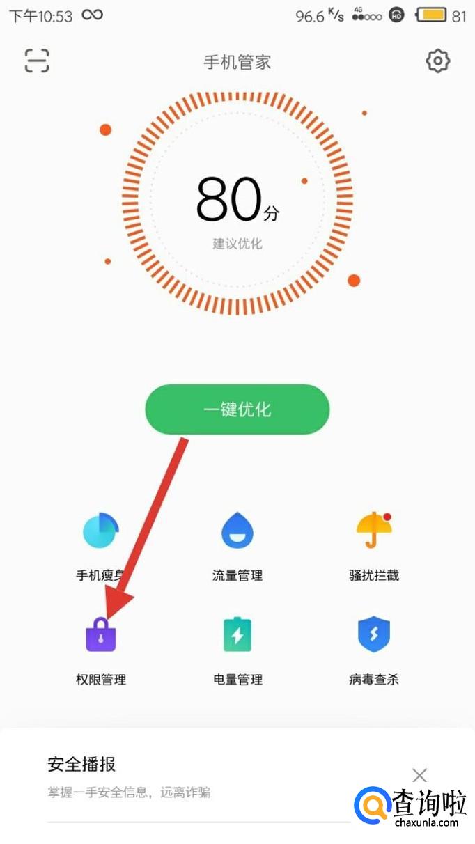 打开手机的安全中心或者手机管家,小米,魅族等品牌的手机均可,打开权限管理。