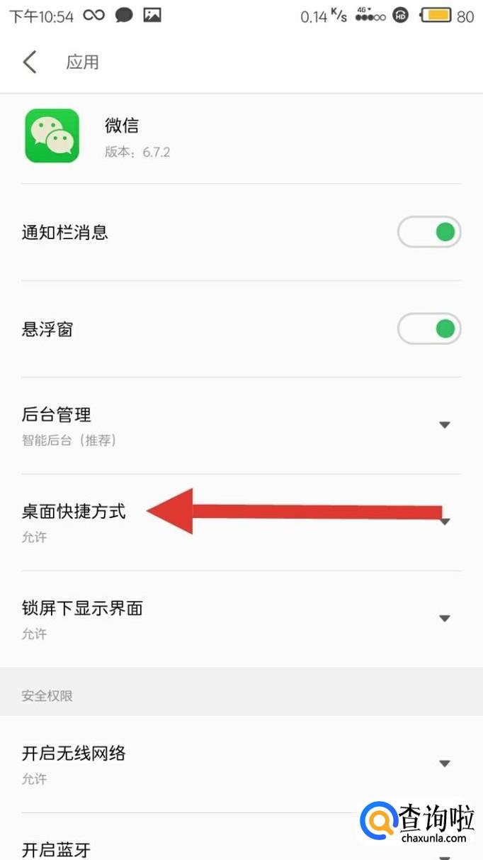 在这里面有一个“桌面快捷方式”,点击选择“允许”即可。
