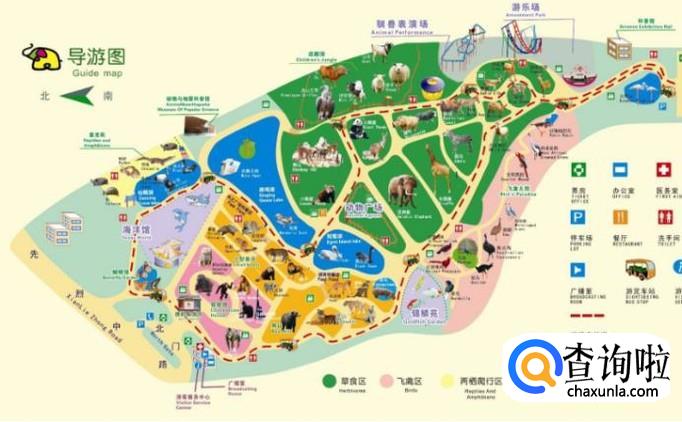 北京动物园的大门口有一张动物园的导航图,里面各个场馆有哪些动物,标注得非常清楚。