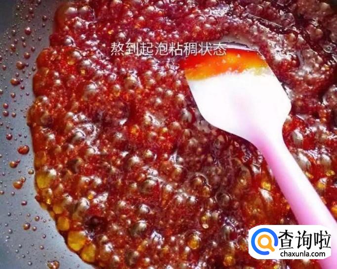 接着等到锅中的糖浆熬到起泡呈粘稠状态就可以关火了,如下图所示。