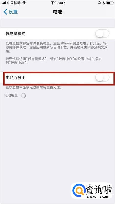 接着点击开启电池百分比开关,如下图所示。