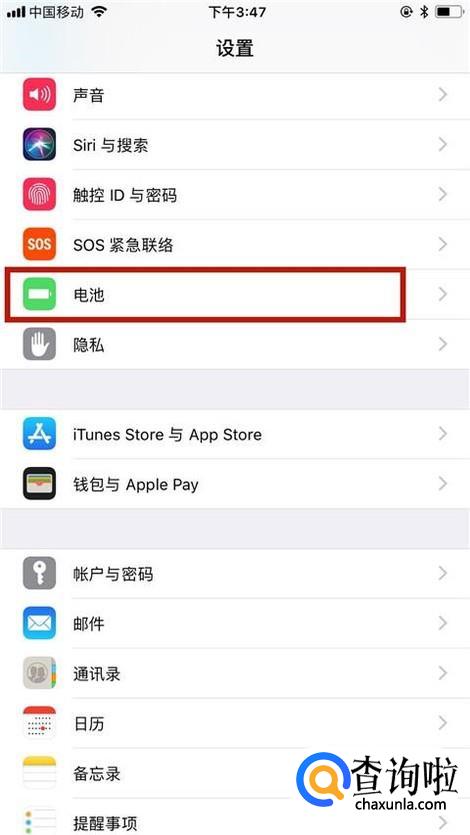然后点击电池,如下图所示。