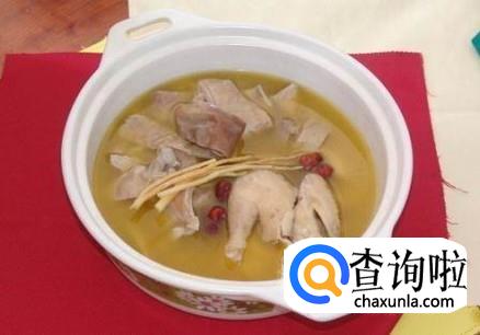 猪小肚煲鸡汤,猪小肚用盐和生粉揉搓清洗干净,鸡肉洗干净切成小块,把鸡肉塞进猪小肚,放入拍碎的胡椒,用牙签把猪小肚缝合,放入高压锅,加入适量的水,大火烧开转小火25分钟