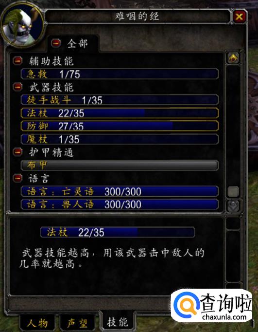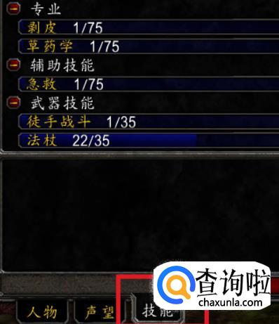 技能的界面是很重要的,武器熟练度都在这里显示。玩战士的要记住会主城学习武器。