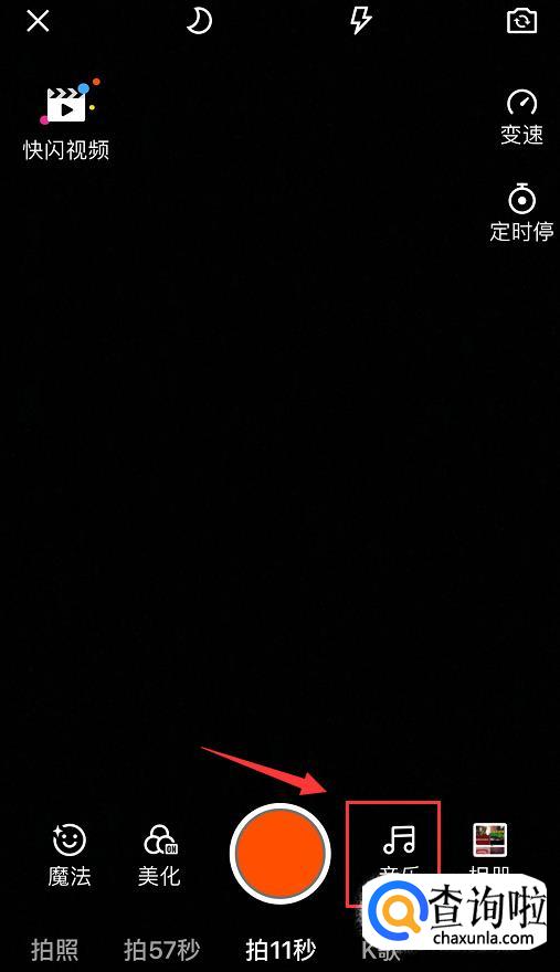 进入视频录制界面后,点击右下角的“音乐”,如图所示。