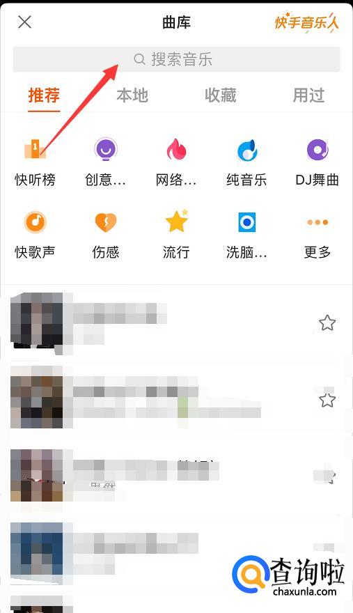在音乐选取页面,可以根据类别选择音乐,也可以在上方搜索栏搜索想要的音乐伴奏,如图所示。