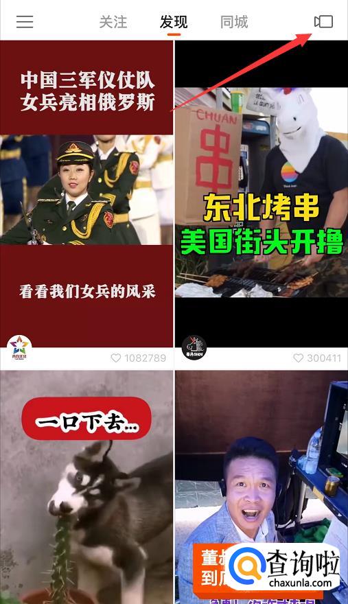 登录进入主页后,点击右上角的摄像机图标,如图所示。