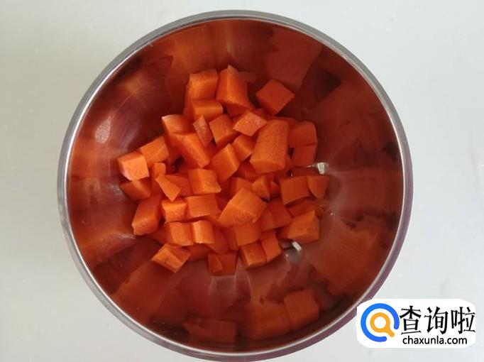把胡萝卜去皮洗净,切成小丁放碗里。