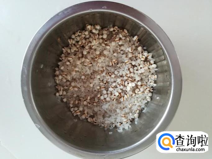 把薏米和大米放盆里,加水洗上三遍,清洗干净。