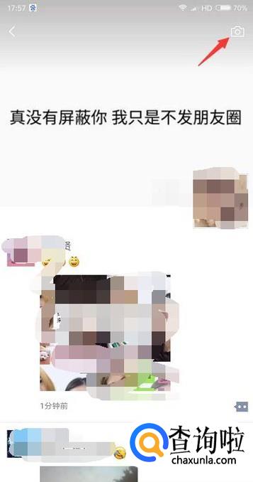 首先我们先打开朋友圈,点击右上角的照相机图标。