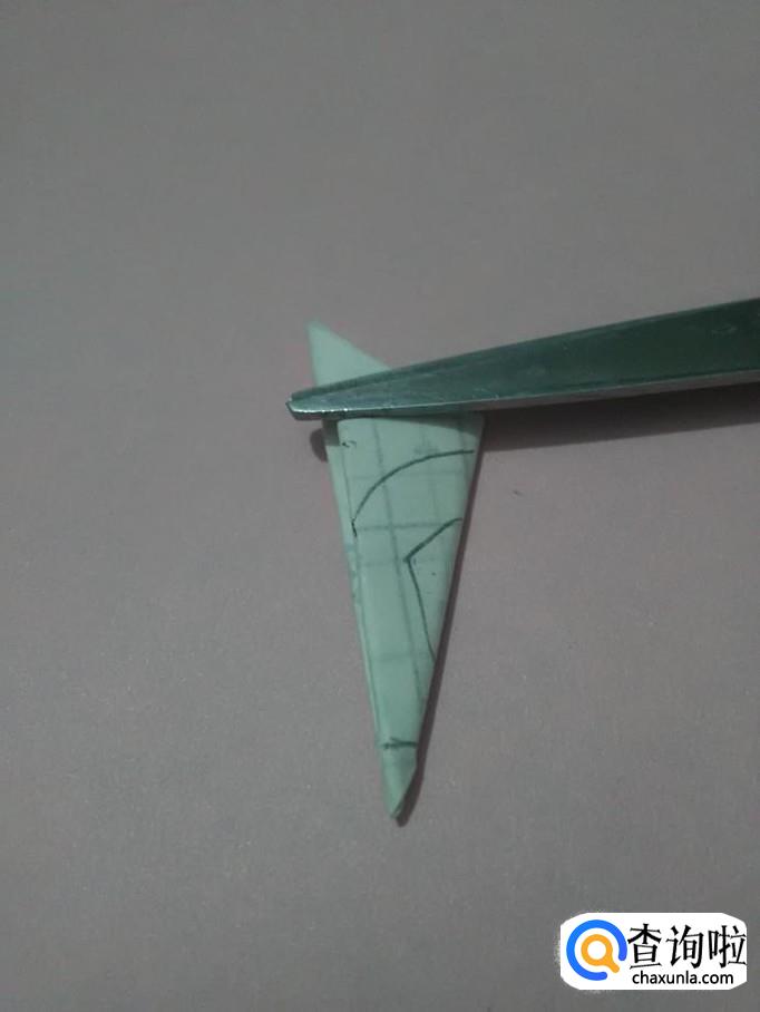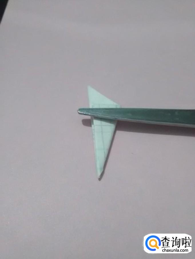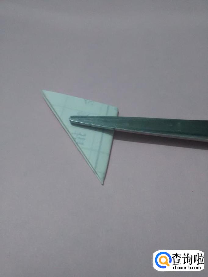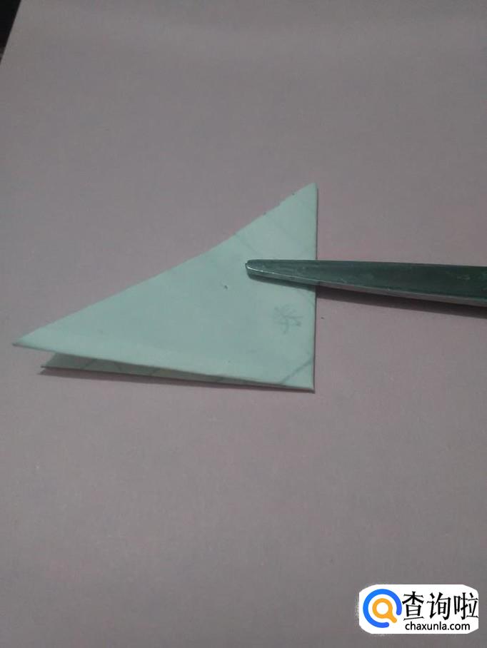 将三角形右边的角向左对折。
