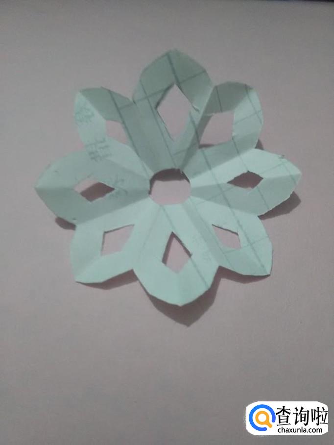 把纸打开,一朵好看的八瓣花就剪完了。
