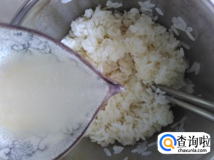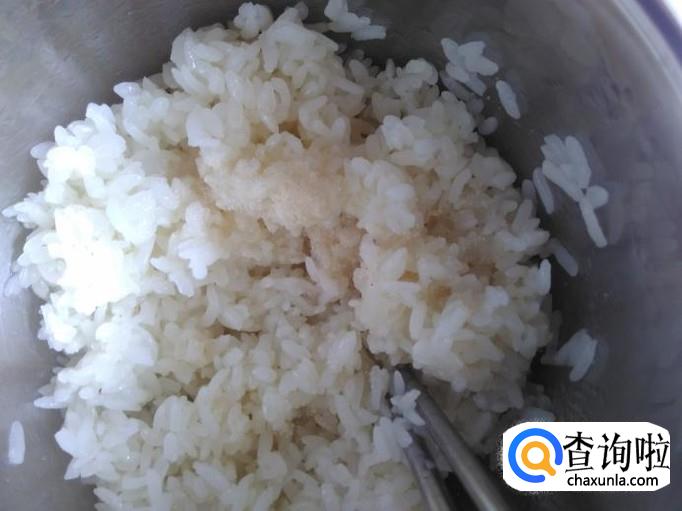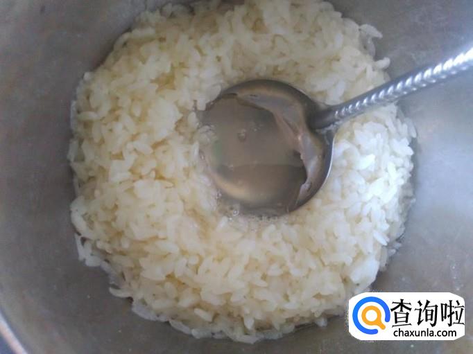 然后浇到30度左右的糯米饭里,用筷子搅拌均匀。