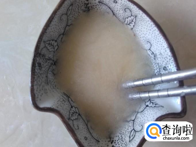 甜酒粉用2勺凉开水搅拌均匀。【甜酒粉按说明下料】