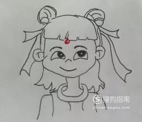 最后我们画出哪吒额头上的一点红,然后用黑色的笔描一下。