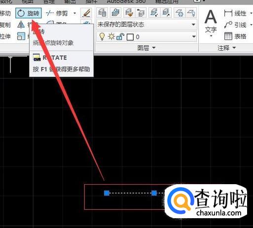 选中直线,点击菜单栏中的“旋转”按钮。