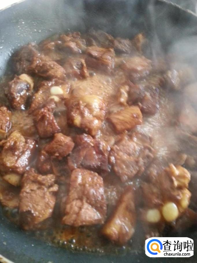 加入黄酒和酱油翻炒均匀,再加入适量水焖烧10分钟,加入适量盐调味,然后继续焖烧5分钟
