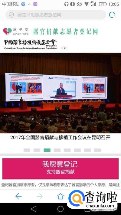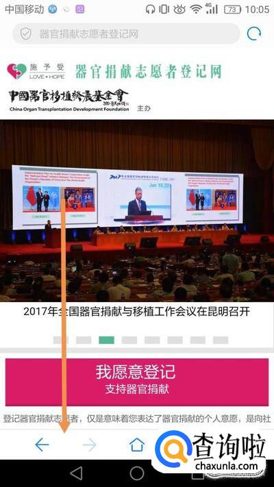 用浏览器打开器官捐献登记网址http://www.savelife.org.cn/outer/m_index.jsp。
