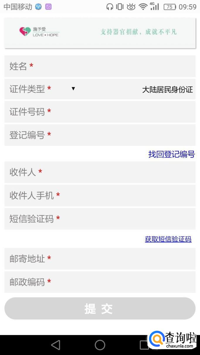 然后填写个人信息及邮寄地址。提交即可。这样器官捐献登记卡就会邮寄过来,收取就好了。