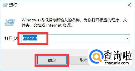 然后返回桌面,按下快捷键win+R,然后输入regedit,点击确定。