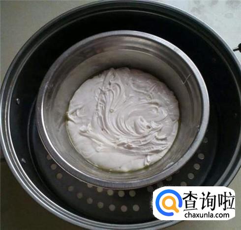 - 02                                                                                                            把糯米糊放入蒸笼上,蒸熟。大概蒸20分钟左右,蒸到糯米糊没有水即可。把蒸好的糯米糊放凉。