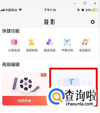 下载安装快影APP,然后打开文字视频选项。