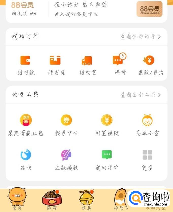 在手机上下载淘宝软件,然后打开淘宝,我们可以看到主页有一个“更多”选项。