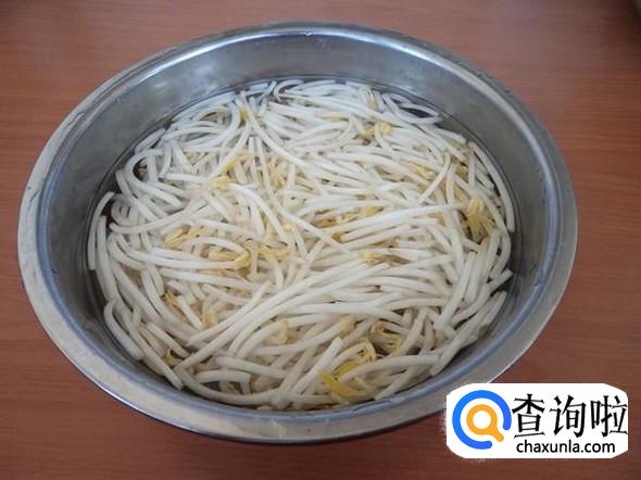 接下来我们也用清水清洗一下绿豆芽,捞出沥干备用。