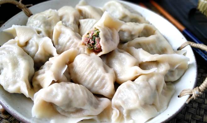 3、另外,提醒一下大家,在包饺子的时候,饺子皮一定要擀得薄一点,厚的饺子皮吃起来很不好吃的。