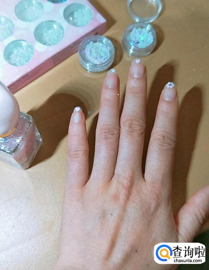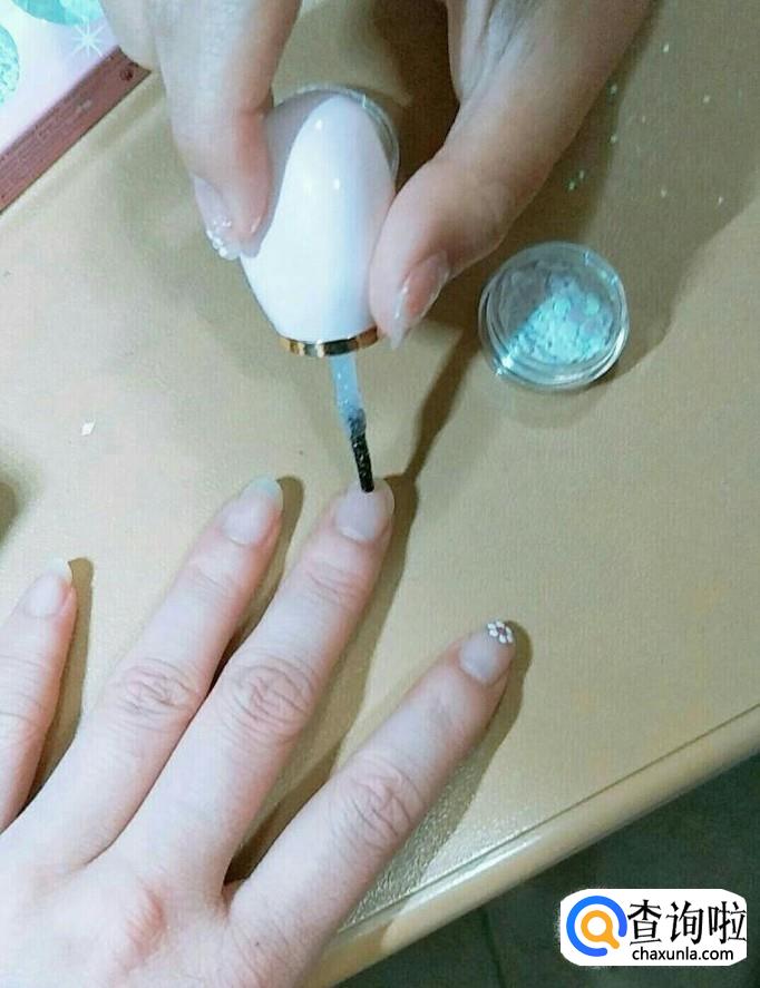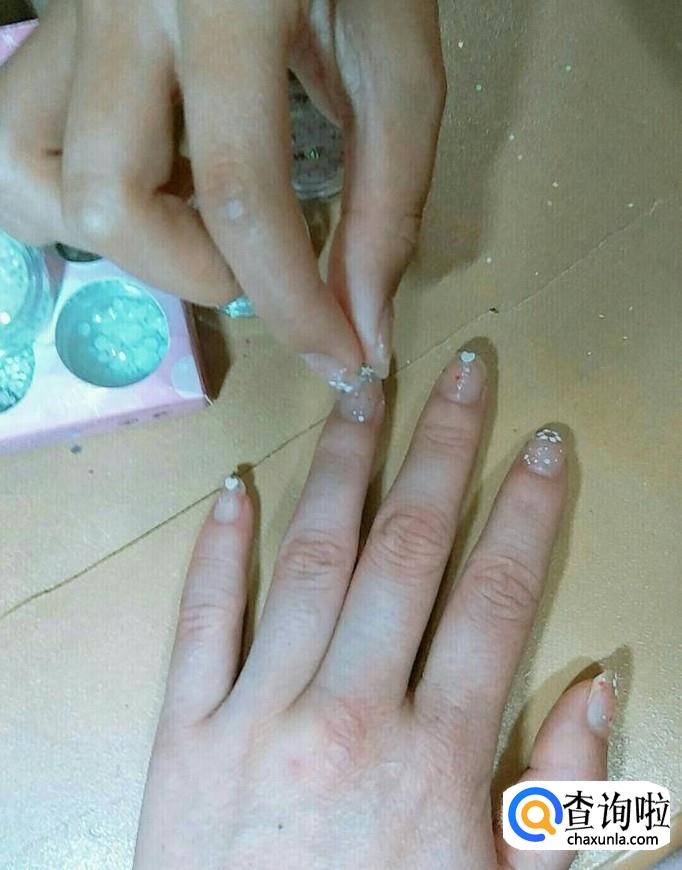 选择自己喜欢的指甲贴,贴在合适的位置。