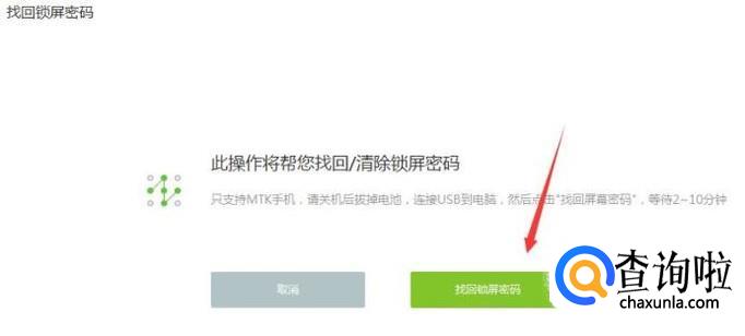 然后我们点击“找回锁屏密码”功能后会弹出提示,我们点击“找回锁屏密码”,之后就开始帮我们解锁,期间需要等待2-10分钟。