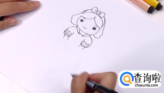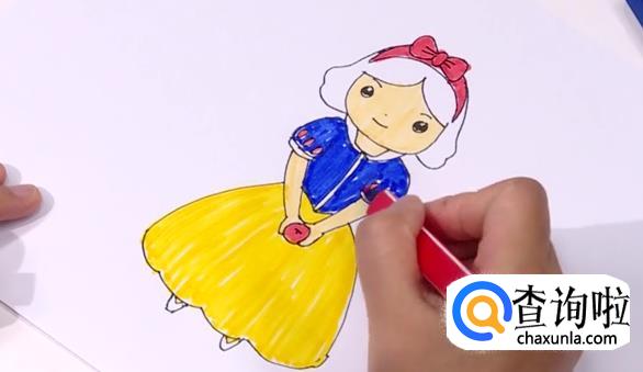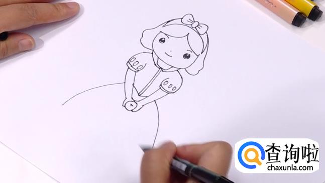 顺势延伸完裙摆的线条,白雪公主就完成了。