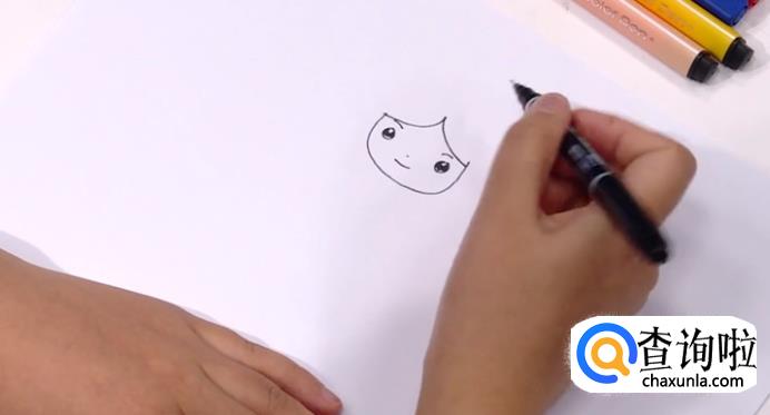 首先,画出白雪公主面部轮廓以及眼睛等五官。