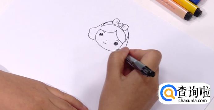 第三步,描绘出白雪公主的五官,眼鼻口等。