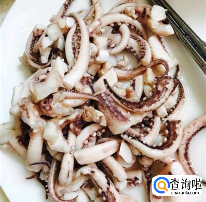 首先准备一些鱿鱼,把鱿鱼清洗干净去掉内脏,切成小块,也可以只用鱿鱼须炒。