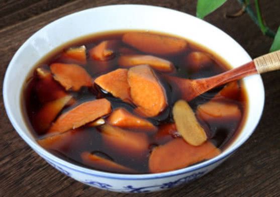 这个此物就是红薯和红糖,红薯是一种天然的滋补食品,含有丰富的蛋白质、多糖、维生素,且热量低,食用后可益气力、健脾胃,增强人体免疫力,而红糖对女性来说也是一种非常好的食材,食用后可以暖身驱寒,促进血液循环。
