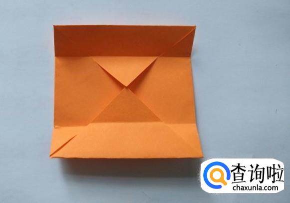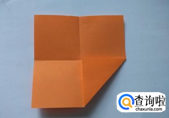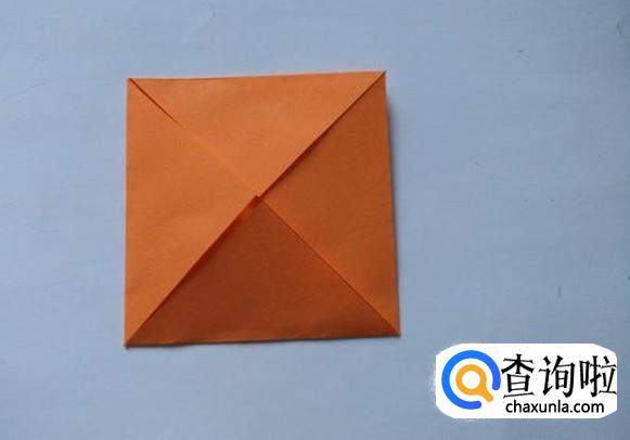 先把正方形纸沿中心线对折后打开,然后依次将四个角折向中心点。