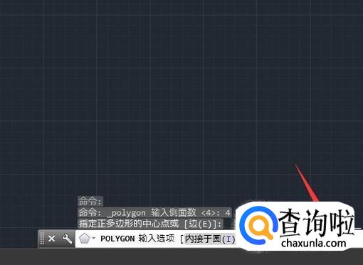 选择多边形我们在命令行内输入边数为4,如图所示: