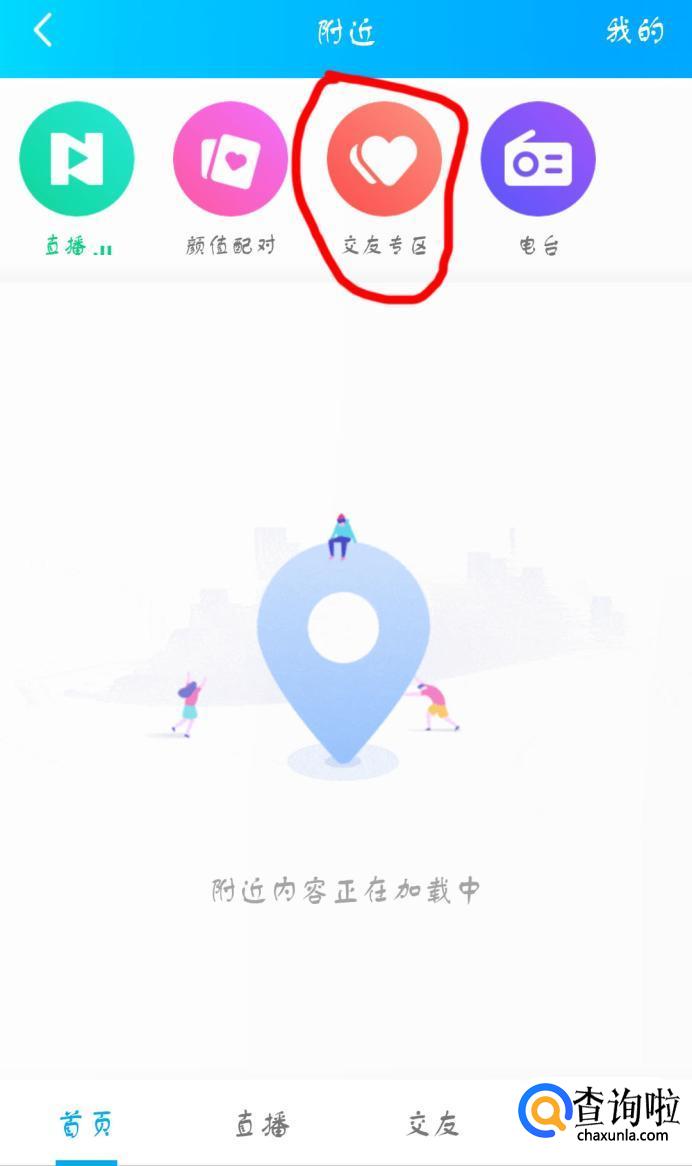 进入此页面,点击“交友专区”。