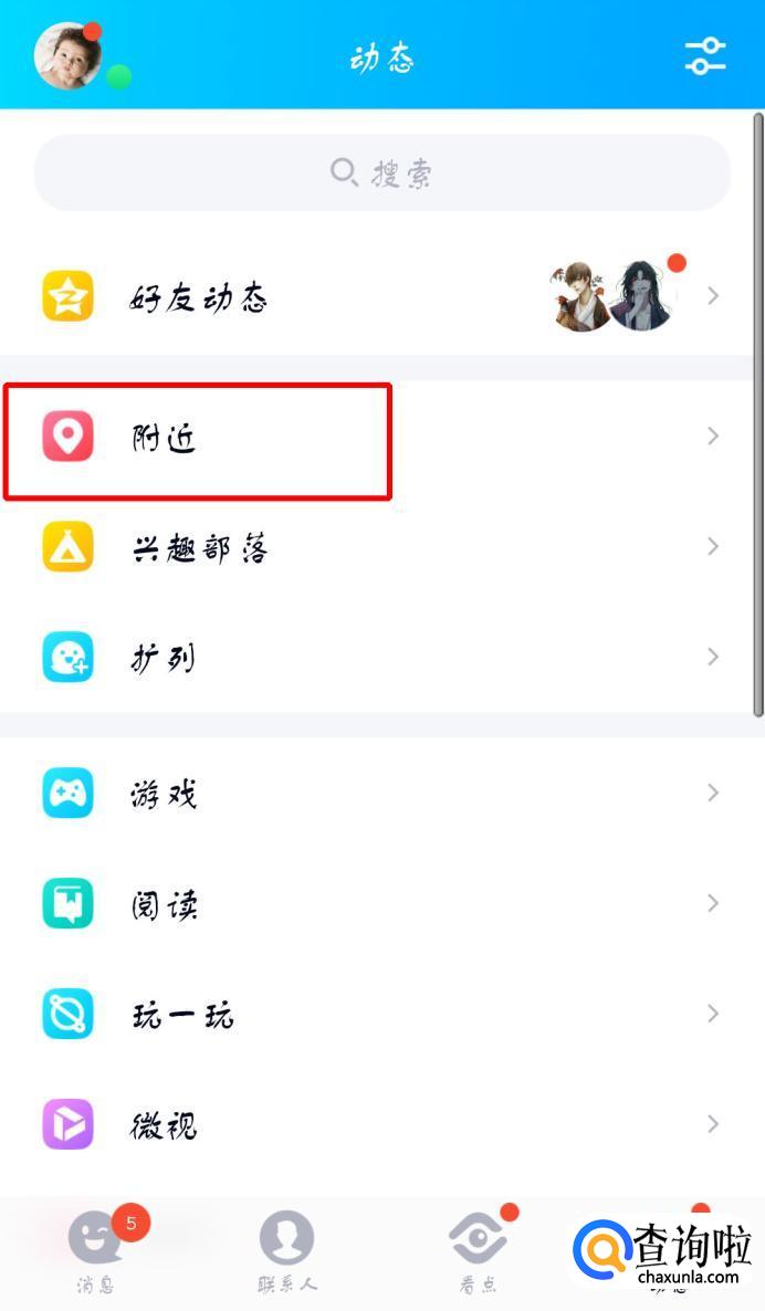 点击“附近”。