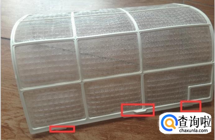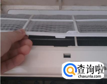 外盖打开后,就可以比较简单的将过滤网取下来了,只要将过滤网下面部分抓住,轻轻往下面拽就好了,一般来说空调有两个过滤网。