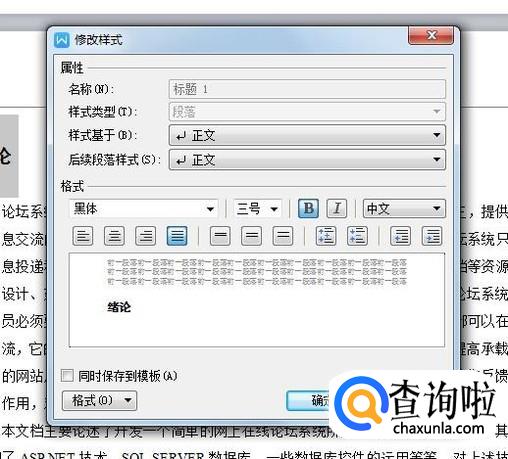弹出如下对话框,可以根据自己的要求设置标题字体、字号、加粗等格式。