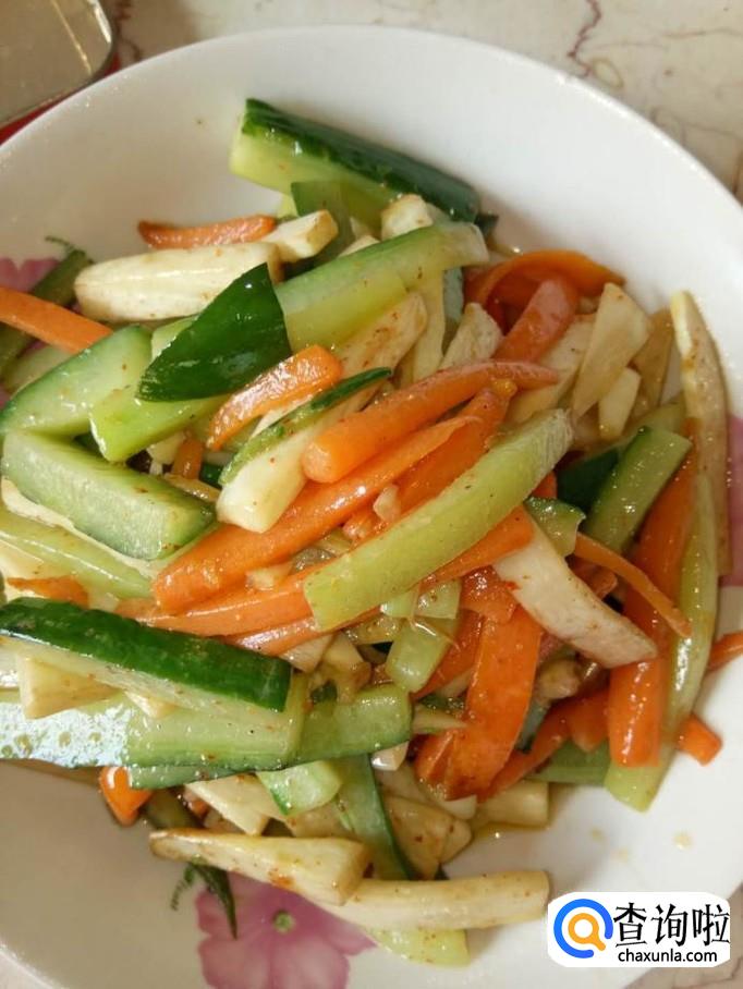 材料:胡萝卜 黄瓜 茭白 盐 鸡精 食用油 蚝油