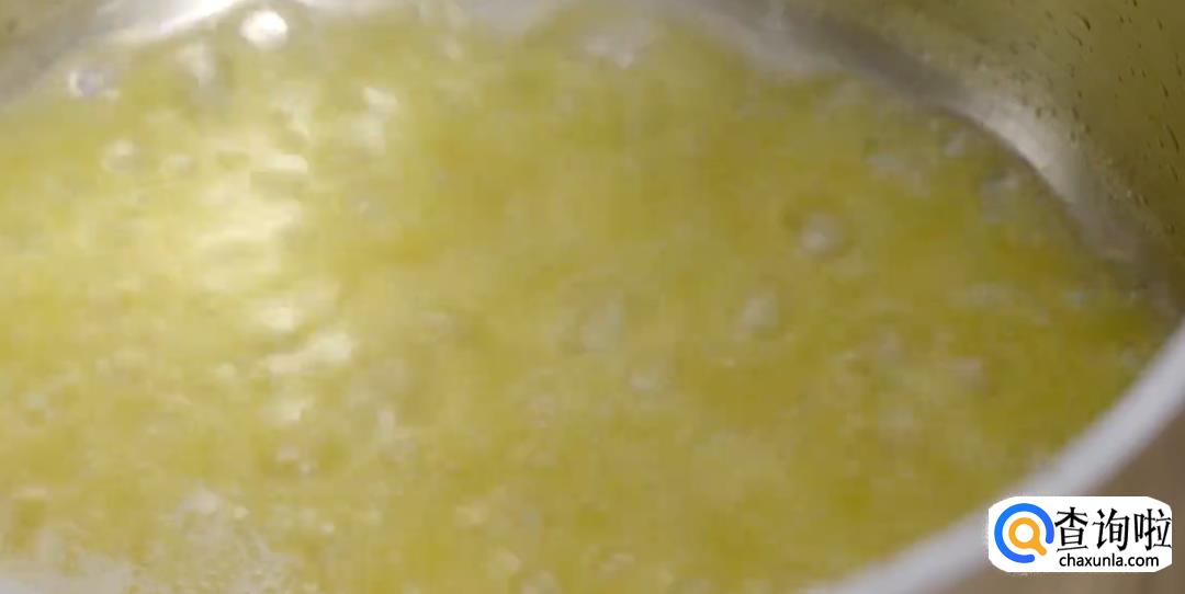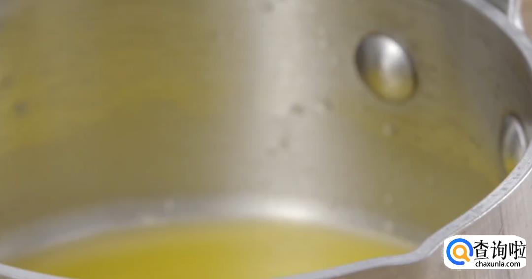 黄油倒入锅中融化,煮沸后放在室温下冷却。