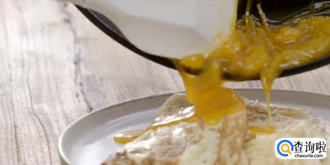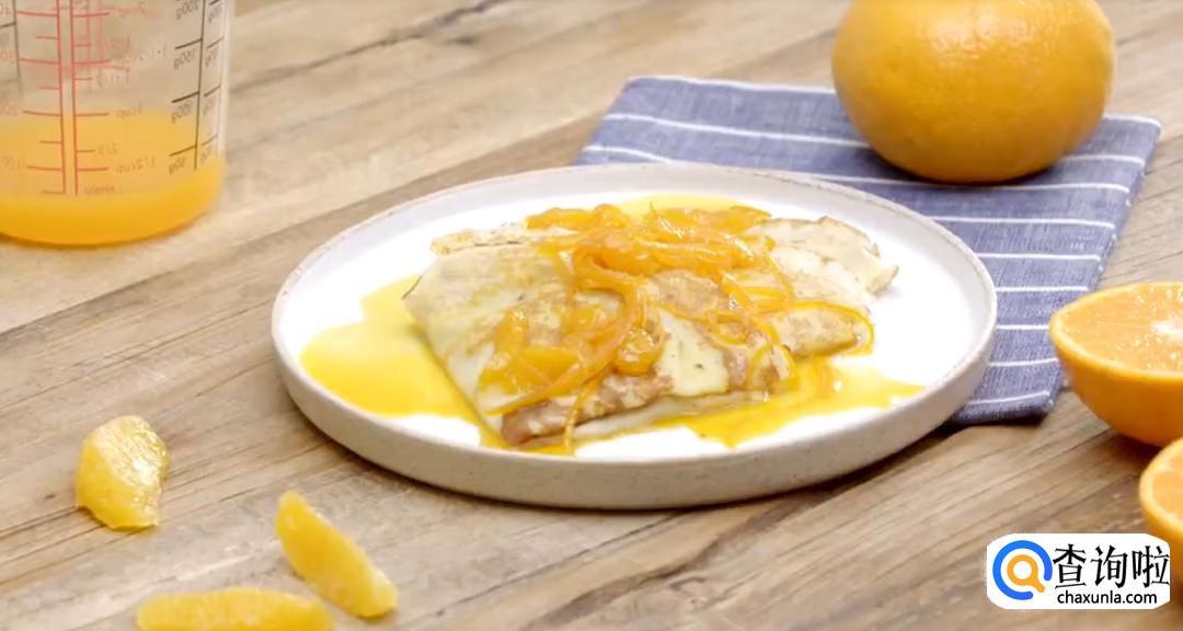 加入一小块黄油,待黄油融化,调味汁就完成了。将调味汁淋在饼皮上,甜柑橘可丽饼就完成了。