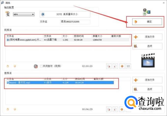 视频和音频文件都添加完毕之后,点击“确定”按钮,然后将混流任务加入软件主界面。
