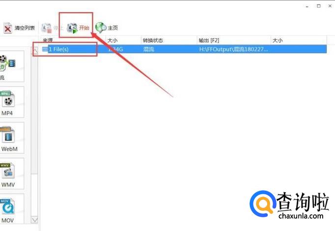 接下来,在软件主页面的任务列表中,点击“开始”按钮,即可开始视频、音频文件的混流任务。